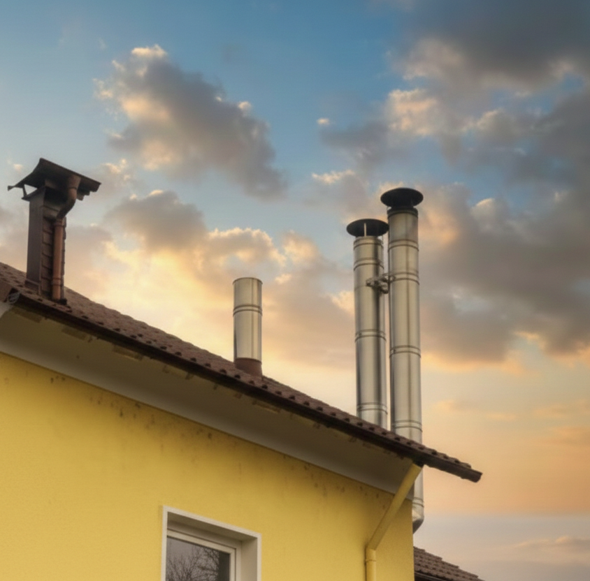 Montujemy atestowane systemy kominowe (stal nierdzewna, żaroodporna lub elastyczne wkłady ALUFOL) dostosowane do rodzaju paliwa i temperatury spalin.