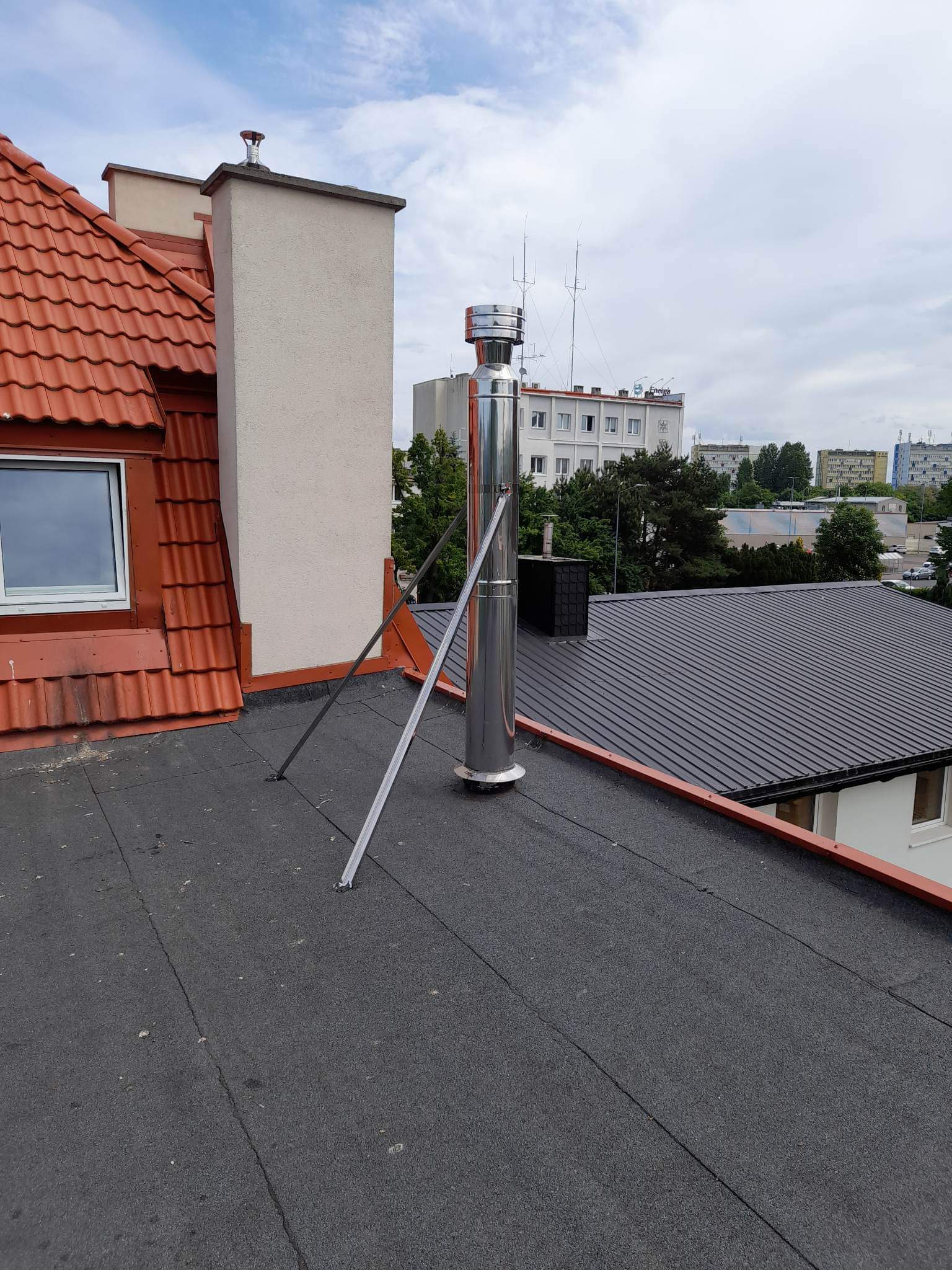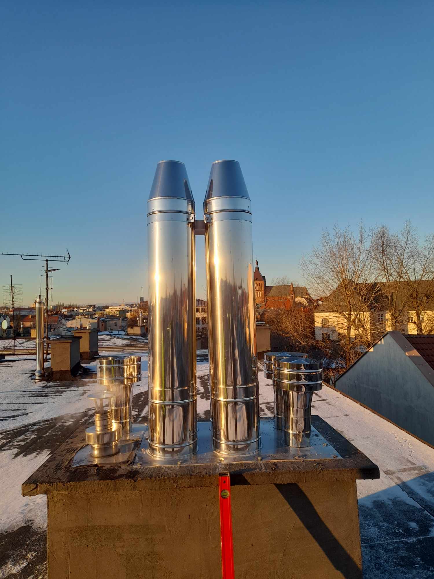 Montaż kominów dwuściennych z blachy kwasoodpornej i wysokotemperaturowej